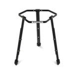 Este soporte ajustable en altura con acabado en negro y cromo cuenta con el sistema Camlock de LP con una correa de nailon resistente que se envuelve alrededor del bloque central del bongo para una instalación rápida y segura y tiene patas con un solo refuerzo y pies de goma grandes.