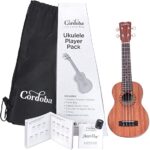 El Córdoba Ukulele Player Pack Concert cuenta con un ukelele de caoba del tamaño de un concierto con un acabado satinado ligero y transpirable. Un sintonizador digital con clip hace que mantenerse afinado sea muy fácil, y un juego de cuerdas adicional significa que puede mantener fresco su Córdoba. También se incluyen tres selecciones y un folleto de ukelele instructivo para que pueda comenzar a usarlo en poco tiempo.